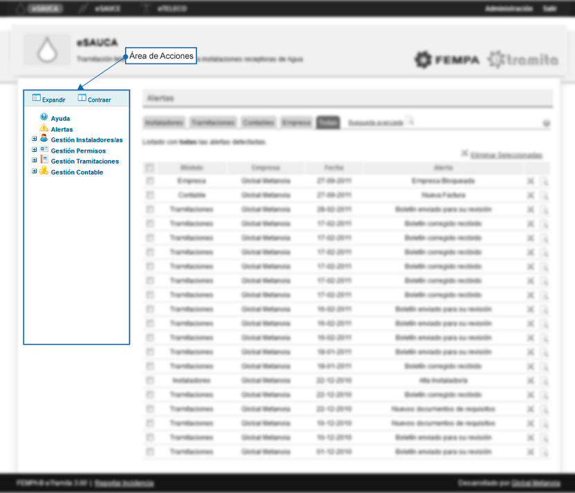 Acciones de la herramienta : comprende el conjunto de acciones que permiten la gestión de los recursos para la tramitación digital.