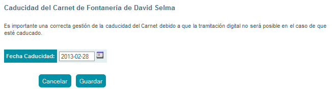 Para modificar la Caducidad del Carnet de Instalador pulse sobre la acción y cambie la fecha en el formulario que aparece a continuación.