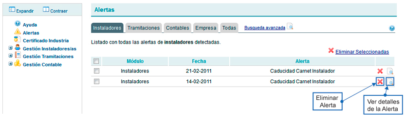 Instalador Bloqueado esta alerta se genera cuando FEMPA; por causas internas; ha decidido bloquear a un instalador dado el acceso a las herramientas de eTramita. En este caso, la empresa deberá ponerse en contacto con FEMPA para conocer los detalles.