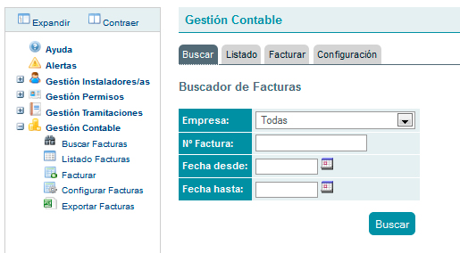 Esta opción despliega un formulario de búsqueda de facturas. Los campos disponibles para buscar un pago son: Empresa y rango de fechas (Fecha desde – Fecha hasta).