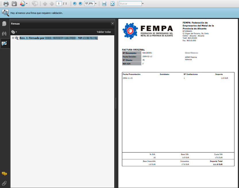 El firmado digital del PDF de una factura será visible y verificable de forma sencilla desde la aplicación Adobe Reader 7 o versiones superiores. Además, se garantiza la veracidad de los documentos firmados, generando un control de cambios visible por los usuarios. El firmado digital cumple con los estándares exigidos por la Agencia Tributaria.