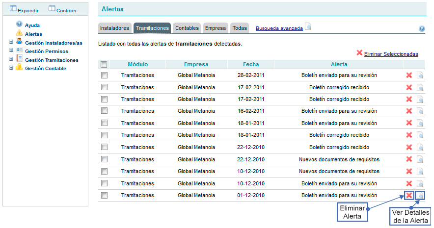 Las Alertas de tramitación, notifican al usuario los eventos que tienen que ver con las tramitaciones realizadas a través del sistema. Estas alertas incluyen: