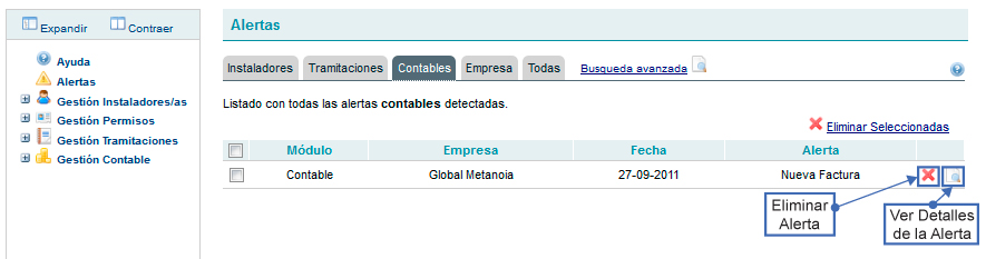 En este módulo el usuario encontrará las notificaciones relacionadas con la gestión contable de sus tramitaciones a través de eSAUCA. Las Alertas contables incluyen: