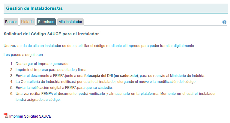 En el caso de la Autorización del instalador a FEMPA , debe seguirse el siguiente procedimiento: